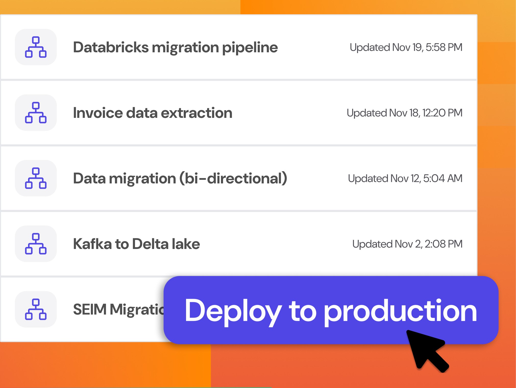 Ingest, transform, and normalize complex data in minutes, then deploy anywhere — automatically fixing schema drift and delivering consistent, clean, AI-ready output to any destination.